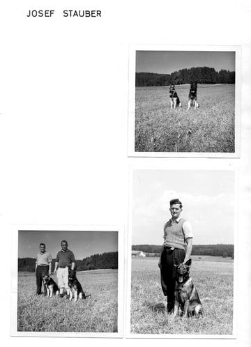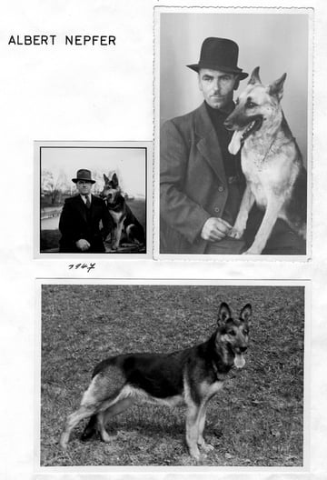 Oben links: Alfred Nepfer mit seinen Schäferhunden im Jahre 1947. Rechts oben: A. Nepfer ca. 1938 mit seiner damaligen Hündin Fany. (weitere Bilder unter "Zeitzeugen 1921 - 45")