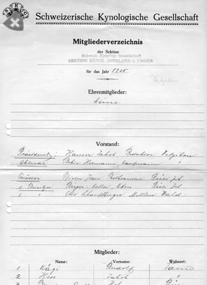Das erste offizielle SKG-Verzeichnis der Mitglieder der SKG Sektion Zürcher Oberland von 1925