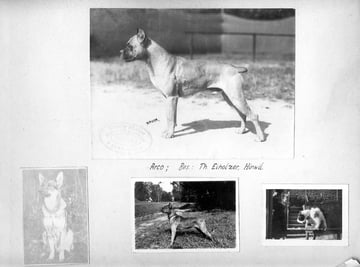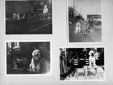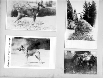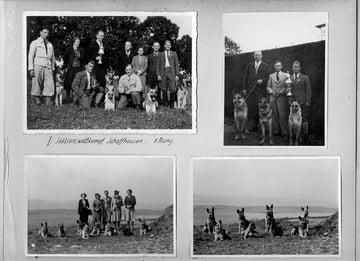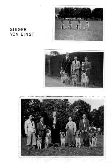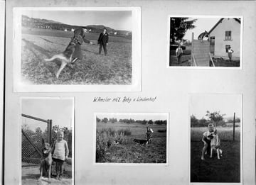 Oben Mitte: Albert Nepfer und seiner Hündin Fanny