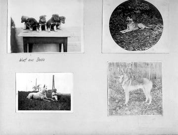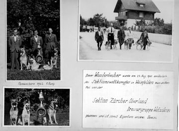 Oben rechts: Wurf 0 Zwinger vom Lindenhof, Müller Fritz Bahnangestellter Muttenz