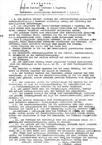 Dies sind die ersten Vereinsstatuten der SKG ZO die anlässlich der Gründungsversammlung vom 21. Oktober 1921 von den anwesenden angenommen wurden. Der Jahresbeitrag wurde auf Fr. 10.- festgelegt.