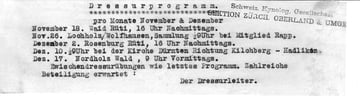 Hier Aufgeführt sind die Dressurübungen des Vereins von Nov. - Dez. 1922. Den Teilnehmern wurde so ein Zettel damals abgegeben.