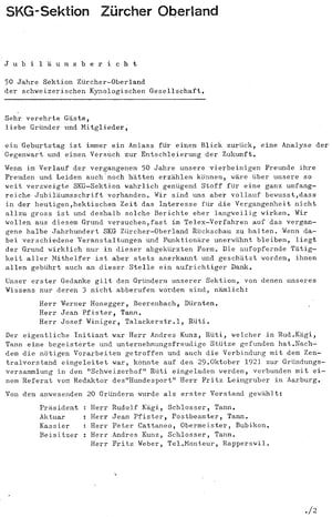Jubiläumsbericht des damaligen Präsidenten Otmar Kocherhans anlässlich der 50 Jahrfeier.