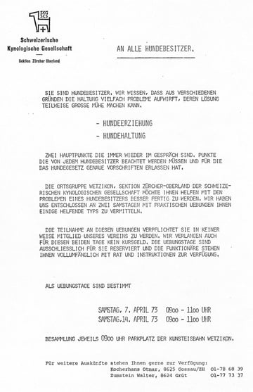 Werbebrief für die Fimvorführung "unser Gebrauchshund" vom November 1972